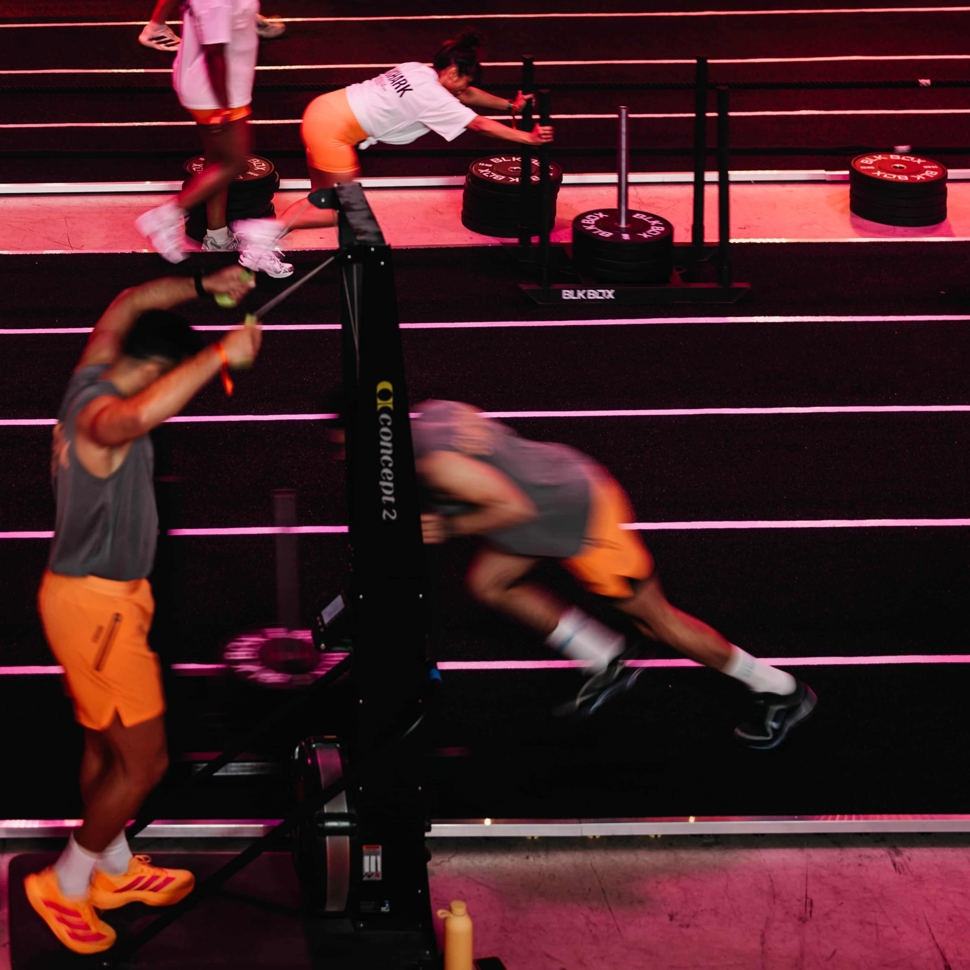 Hyrox isn’t for the faint-hearted. You’ll be moving for an average of 90 minutes, running 8KM and completing 8 workout stations. You need to get comfortable with compromised running for extended periods of time, and you need to make sure the heavier stations in particular (the sled push and pull) don’t catch you out. Other stations will work to spike your heart rate if you go out too fast (ski erg and burpee broad jumps for example) while others will totally burn out your legs (the walking lunges are a killer for this).