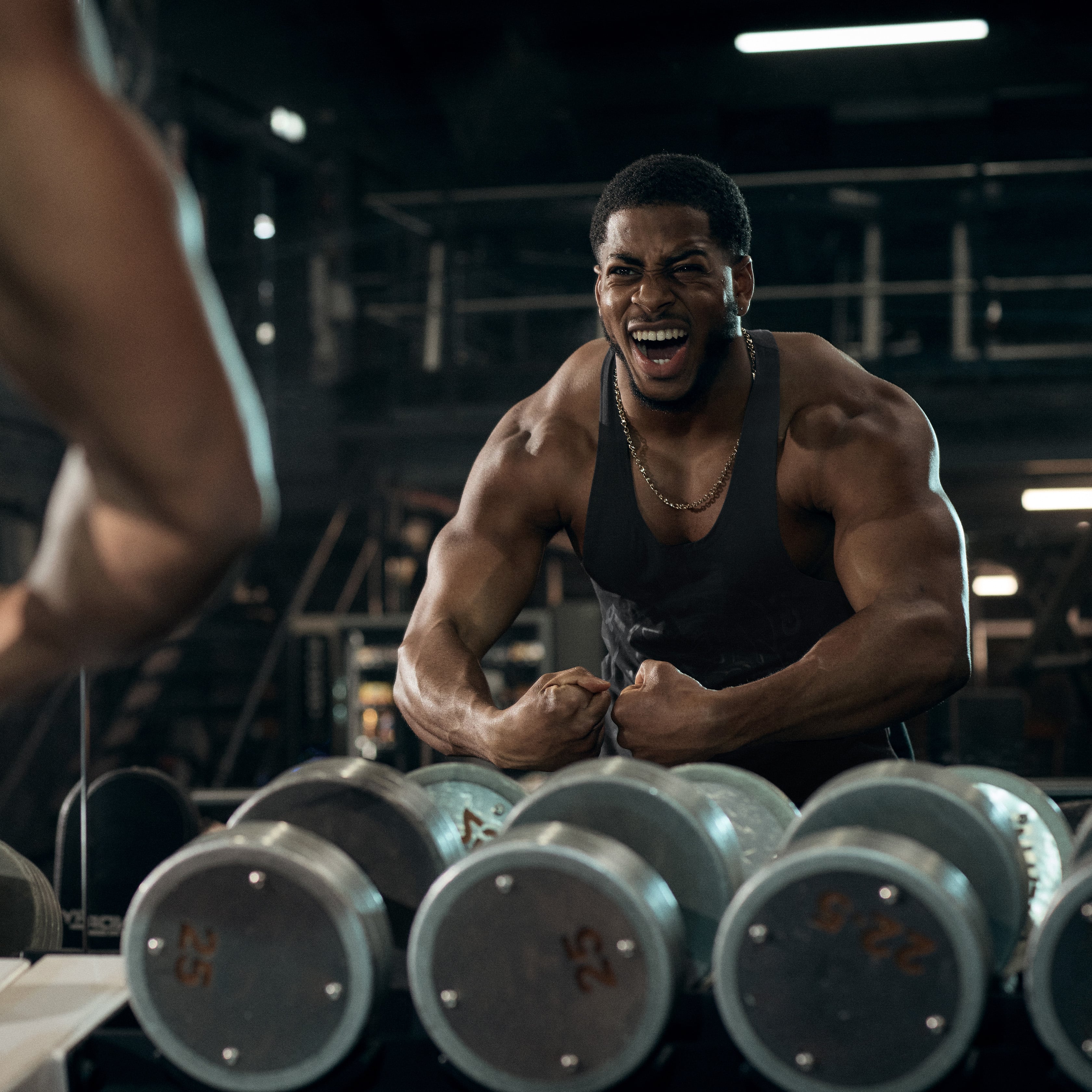 It’s this natural wrist rotation that starts with your fists facing inwards and ends with your palms facing out at the top of the press that activates all of the targeted muscles and improves your range of motion.